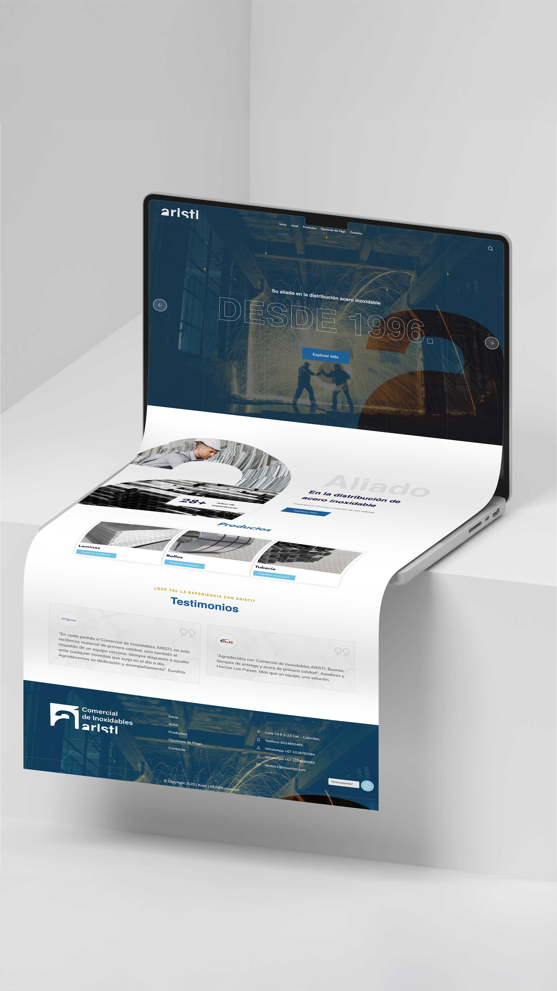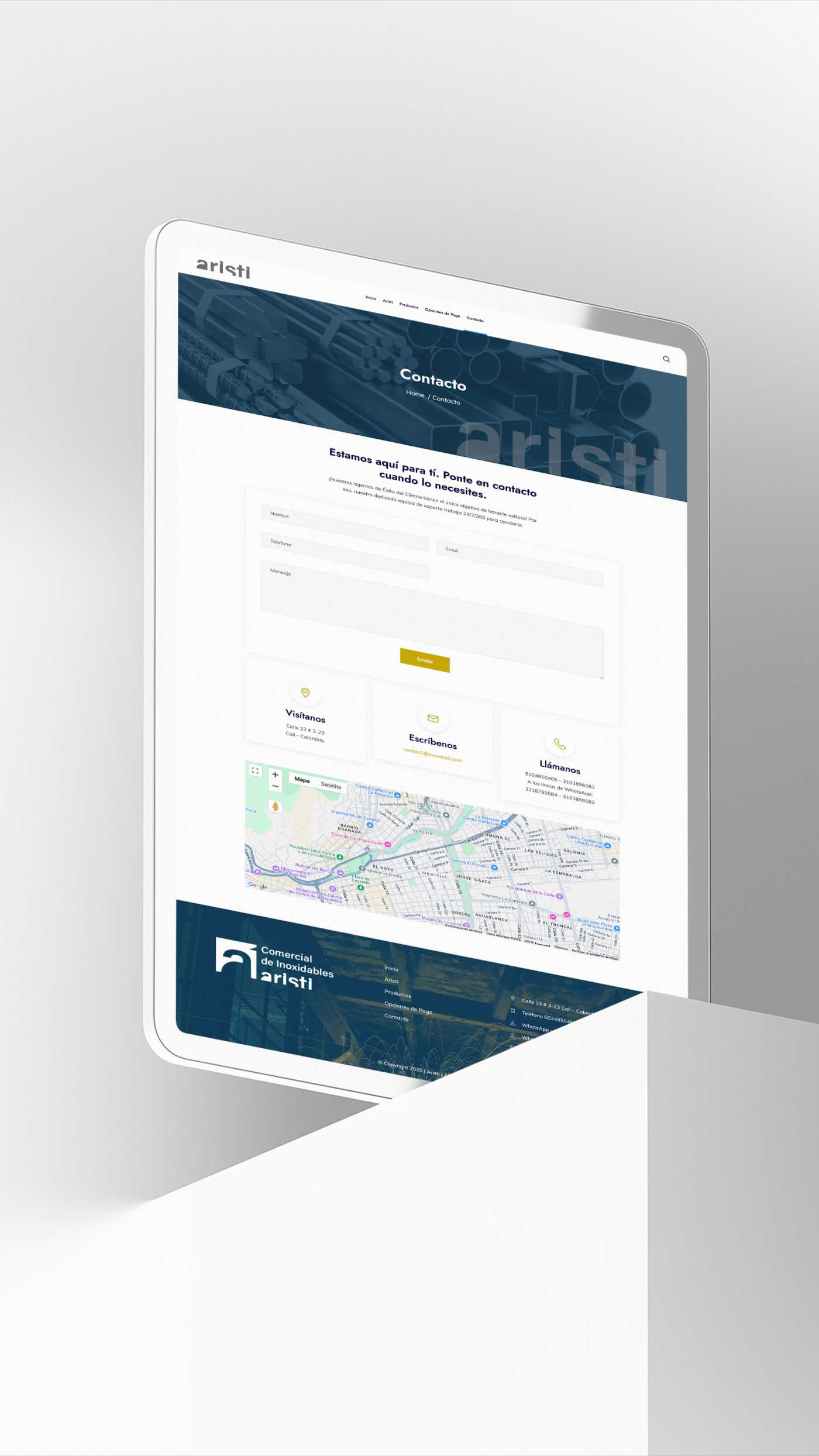 Este trabajo para inoxidables Aristi, fue trabajado con el branding creado por Baena Branding, el cliente renovó su imagen incluido su web site , etapa en la que me incorporaron al proyecto , ya contaban con un sitio web pero necesitaban reflejar esos cambios y dinamismos en la página web , la cual se construyó pensando en solucionar cualquier duda de sus vístanles . Aquí una versión del logo creada específicamente para el sitio web . #rebranding #inoxidable #wordpressdesign #elementorlove